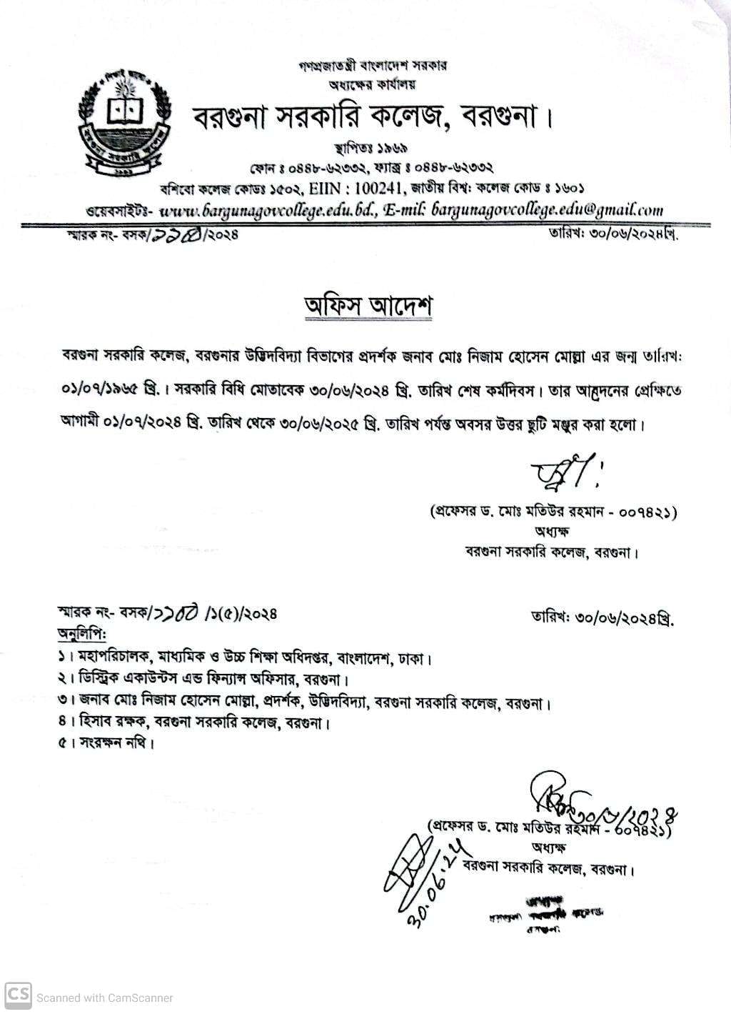 Posted on 30-06-2025 01:06pmজনাব নিজাম হোসেন মোল্লা, প্রদর্শক, উদ্ভিদবিদ্যা বরগুনা সরকারি কলেজের পিআরএল প্রসঙ্গে