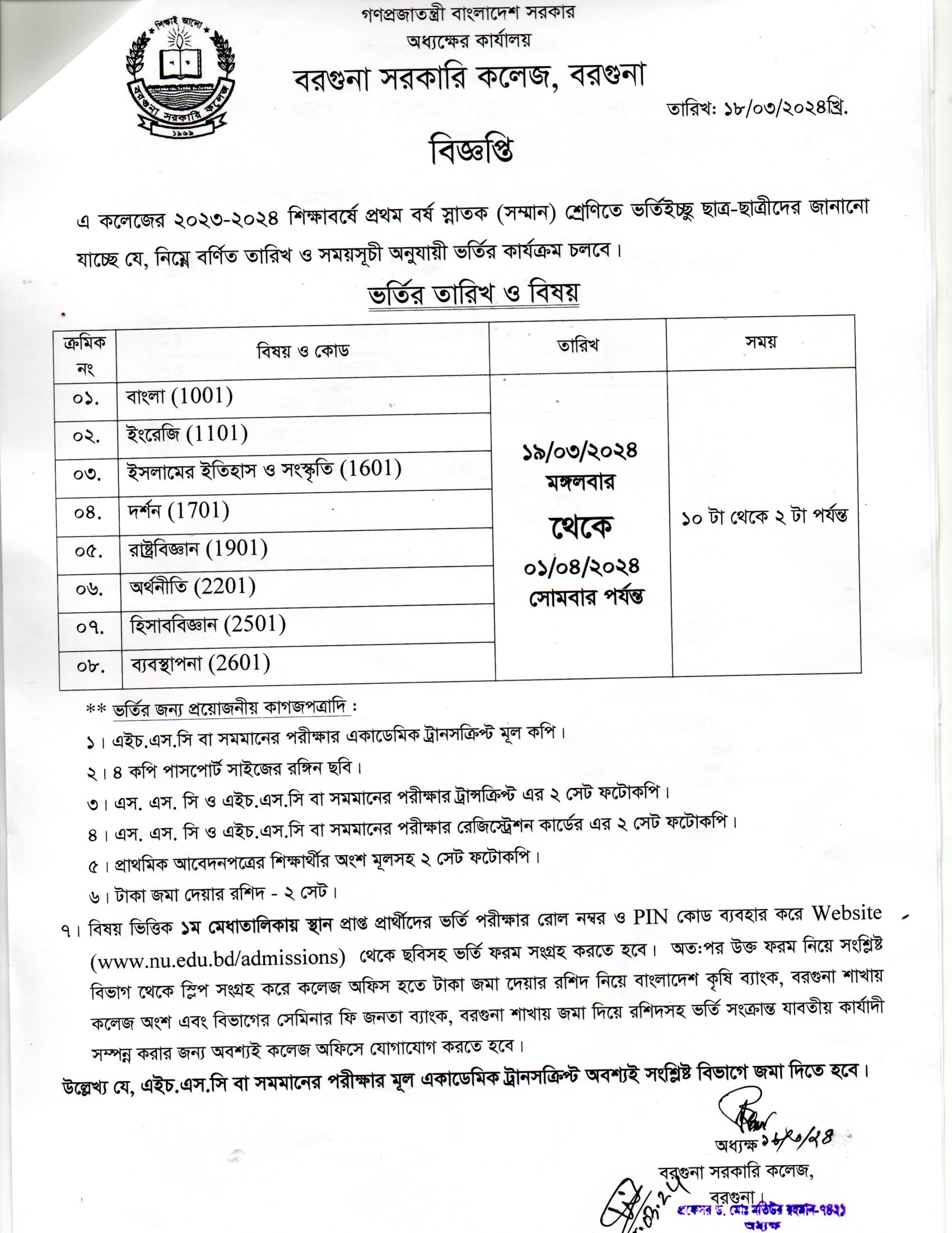 Posted on 19-03-2024 11:51amভর্তি শুরু 19/03/2024 তারিখ থেকে 01/04/2024 খ্রি.
