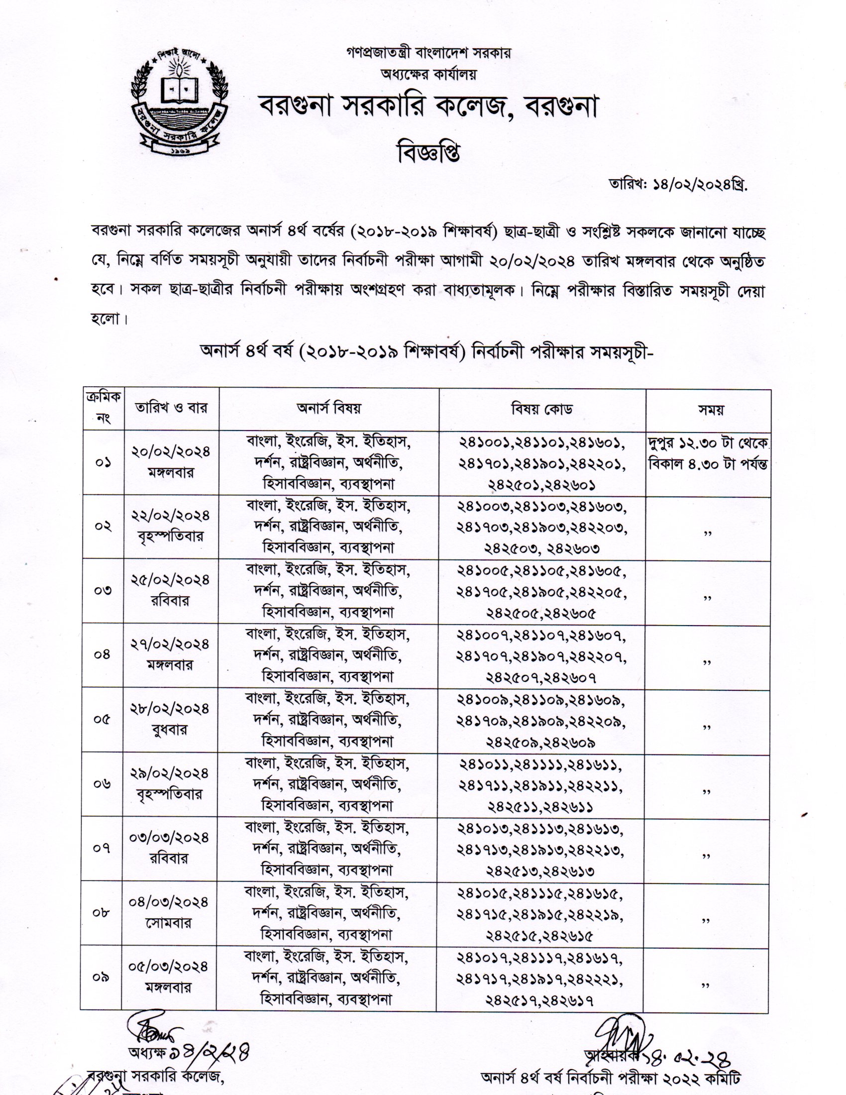 Posted on 15-02-2024 10:11am2018-2019 শিক্ষাবর্ষের অনার্স 4র্থ বর্ষ নির্বাচনি পরীক্ষার সময়সূচি